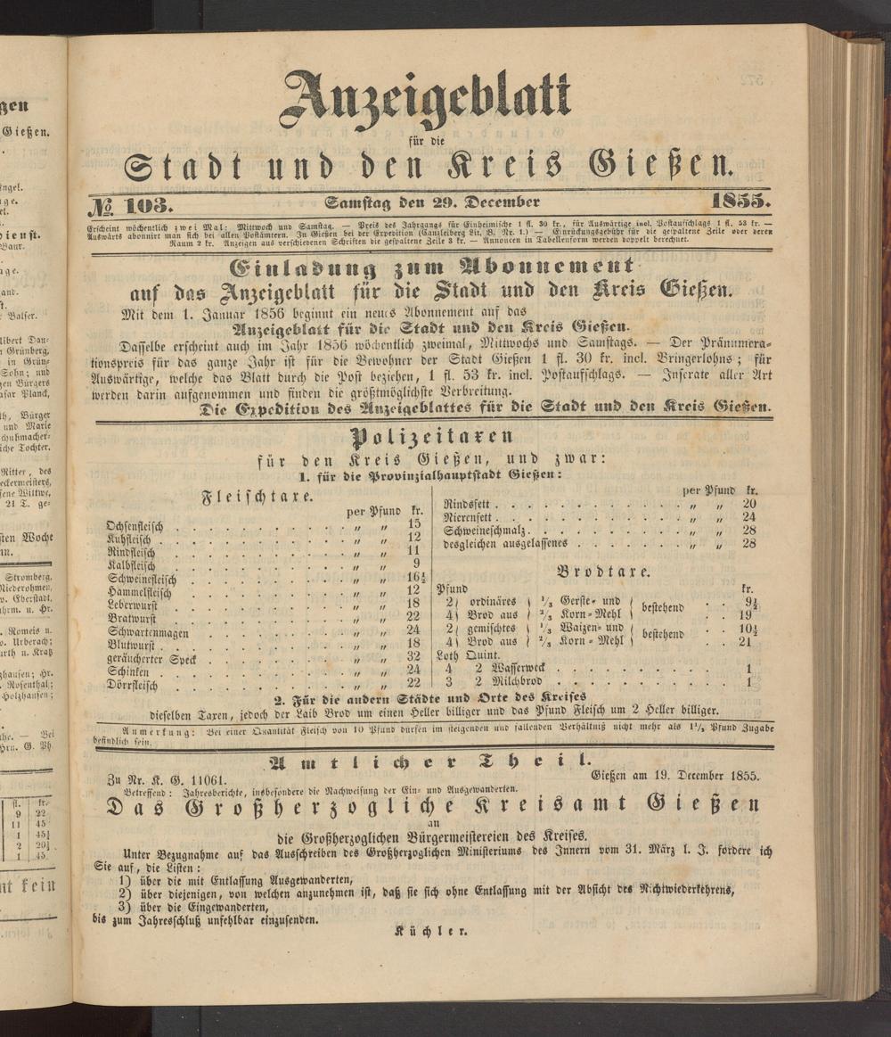 Anzeigeblatt für die Provinzialhauptstadt Gießen. 1840-1867