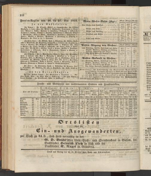 Anzeigeblatt für die Provinzialhauptstadt Gießen. 1840-1867