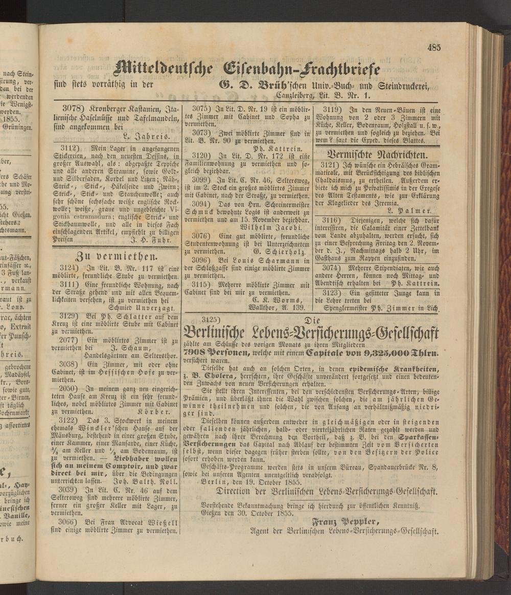 Anzeigeblatt für die Provinzialhauptstadt Gießen. 1840-1867