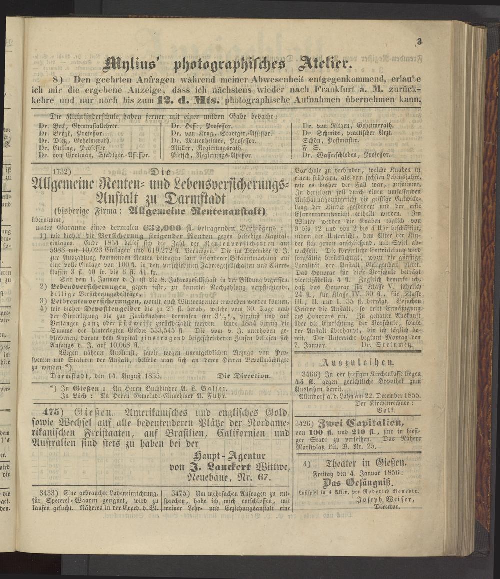 Anzeigeblatt für die Provinzialhauptstadt Gießen. 1840-1867