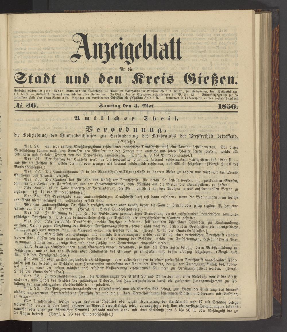 Anzeigeblatt für die Provinzialhauptstadt Gießen. 1840-1867