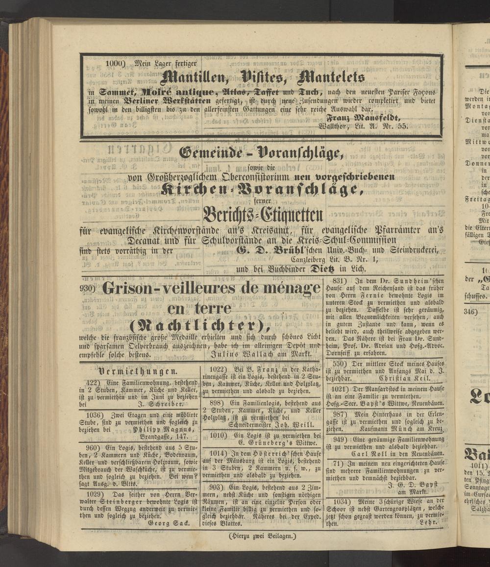 Anzeigeblatt für die Provinzialhauptstadt Gießen. 1840-1867