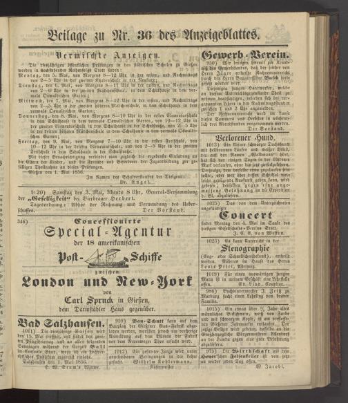Anzeigeblatt für die Provinzialhauptstadt Gießen. 1840-1867
