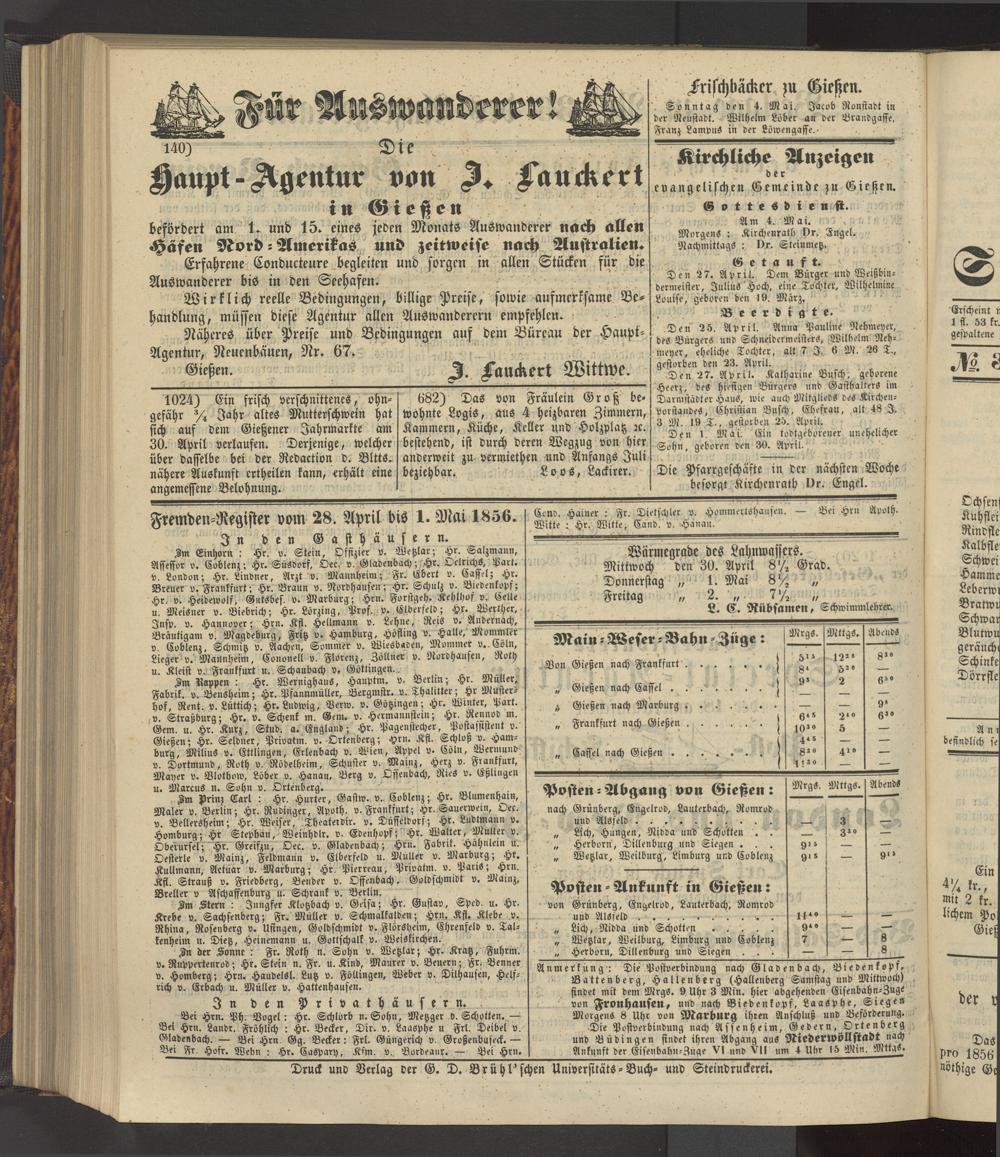 Anzeigeblatt für die Provinzialhauptstadt Gießen. 1840-1867