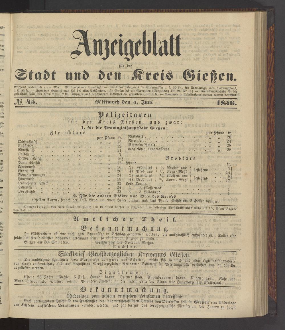 Anzeigeblatt für die Provinzialhauptstadt Gießen. 1840-1867