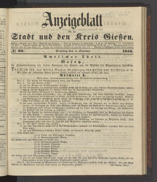 Anzeigeblatt für die Provinzialhauptstadt Gießen. 1840-1867