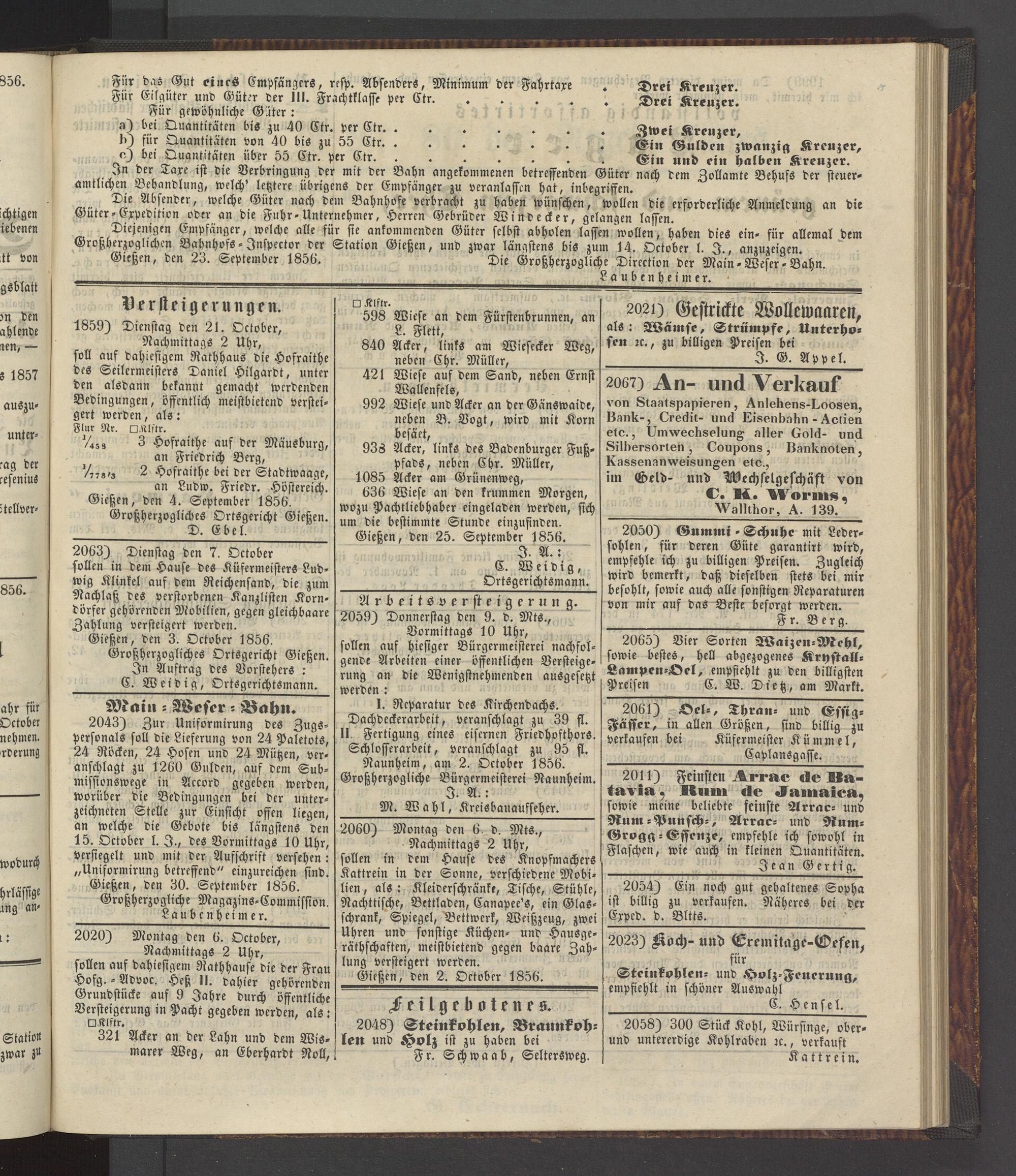 Anzeigeblatt für die Provinzialhauptstadt Gießen. 1840-1867