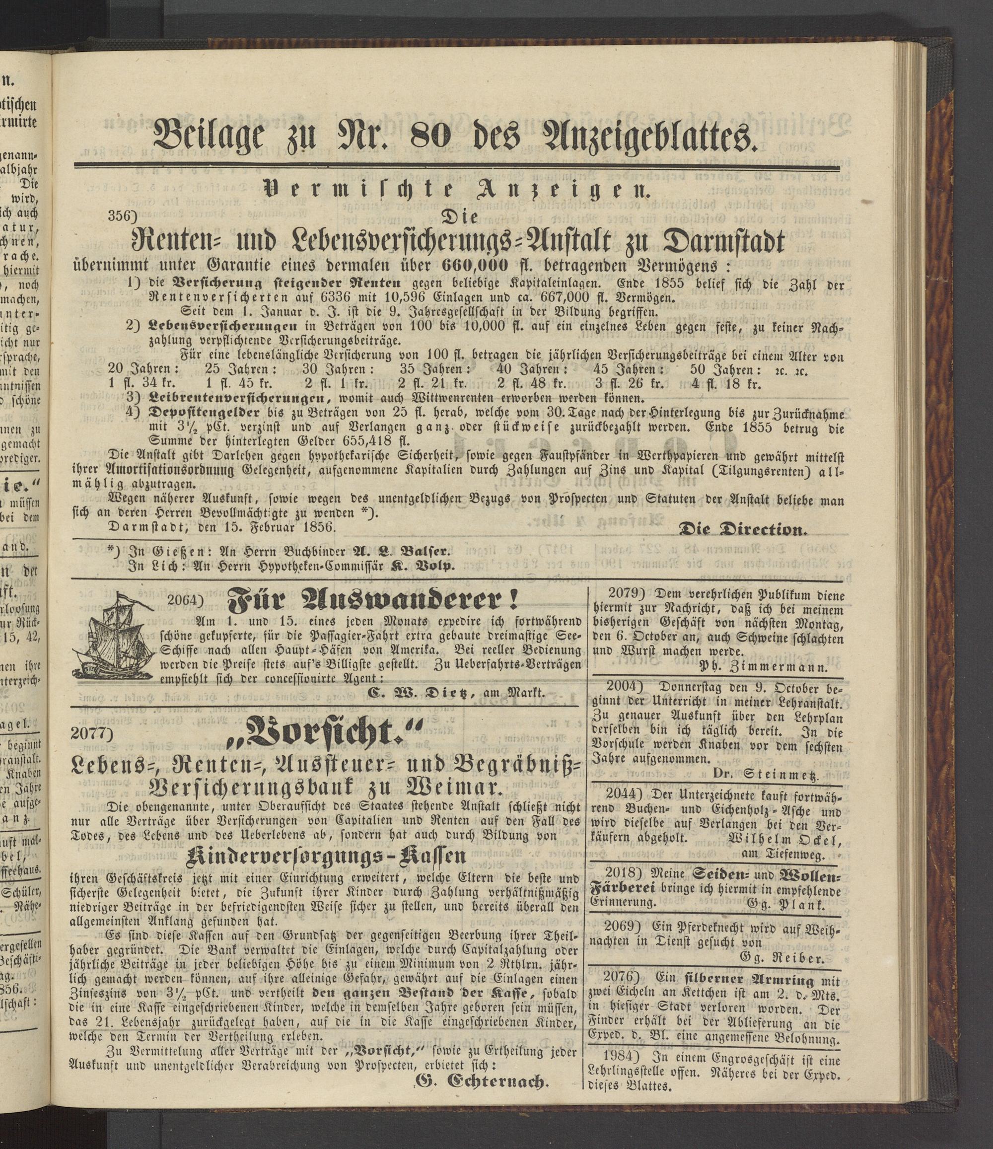 Anzeigeblatt für die Provinzialhauptstadt Gießen. 1840-1867