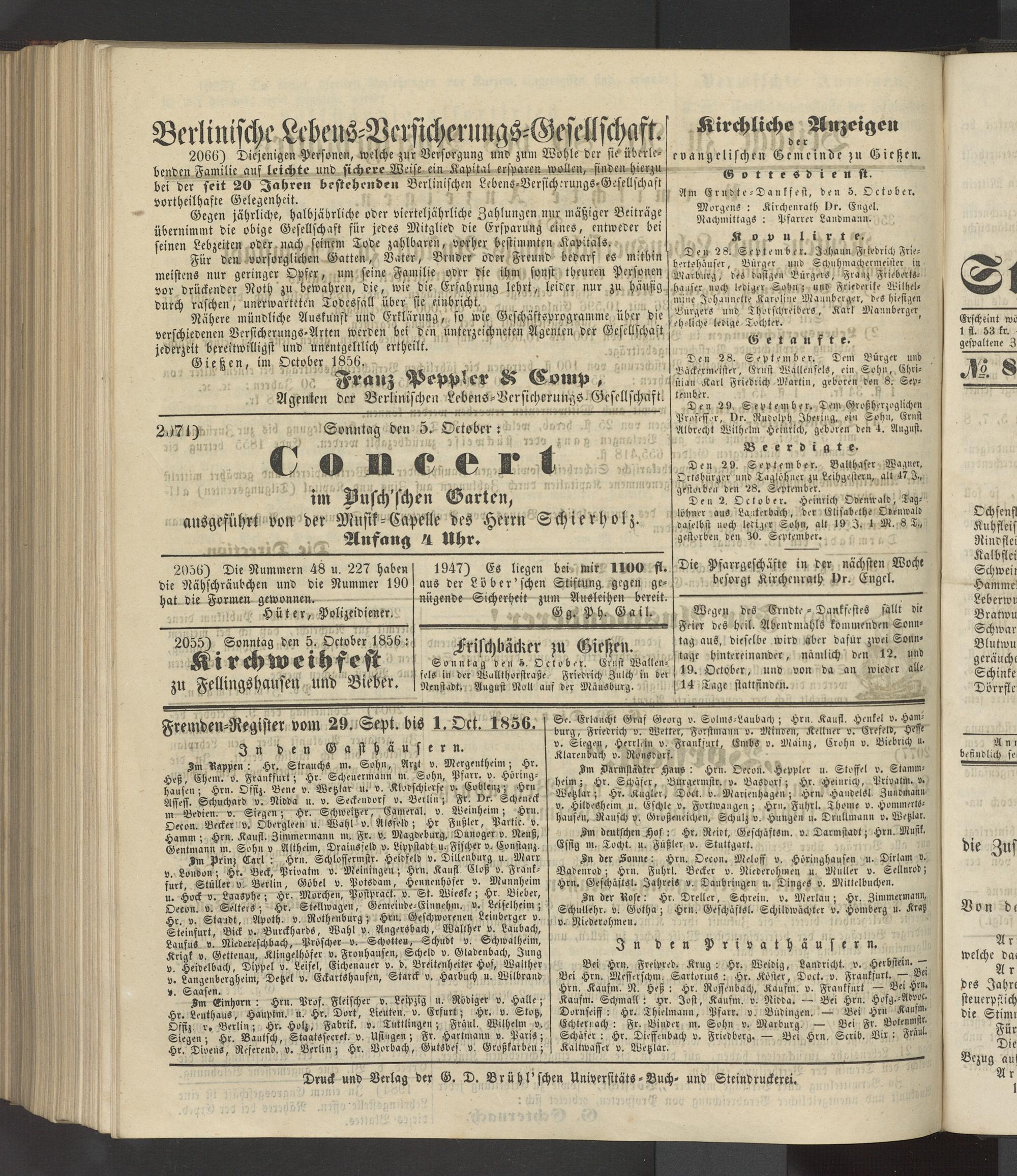 Anzeigeblatt für die Provinzialhauptstadt Gießen. 1840-1867