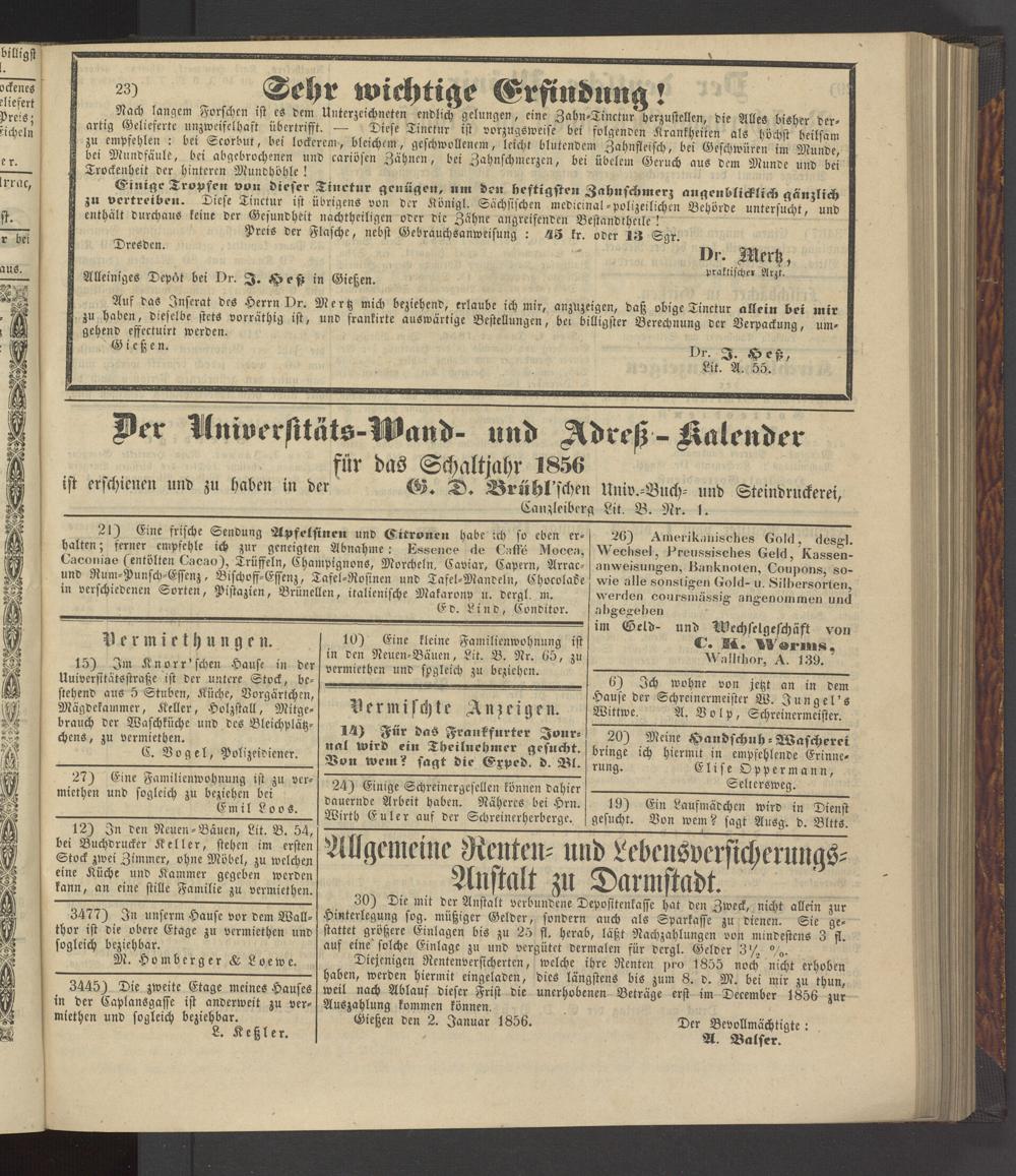 Anzeigeblatt für die Provinzialhauptstadt Gießen. 1840-1867
