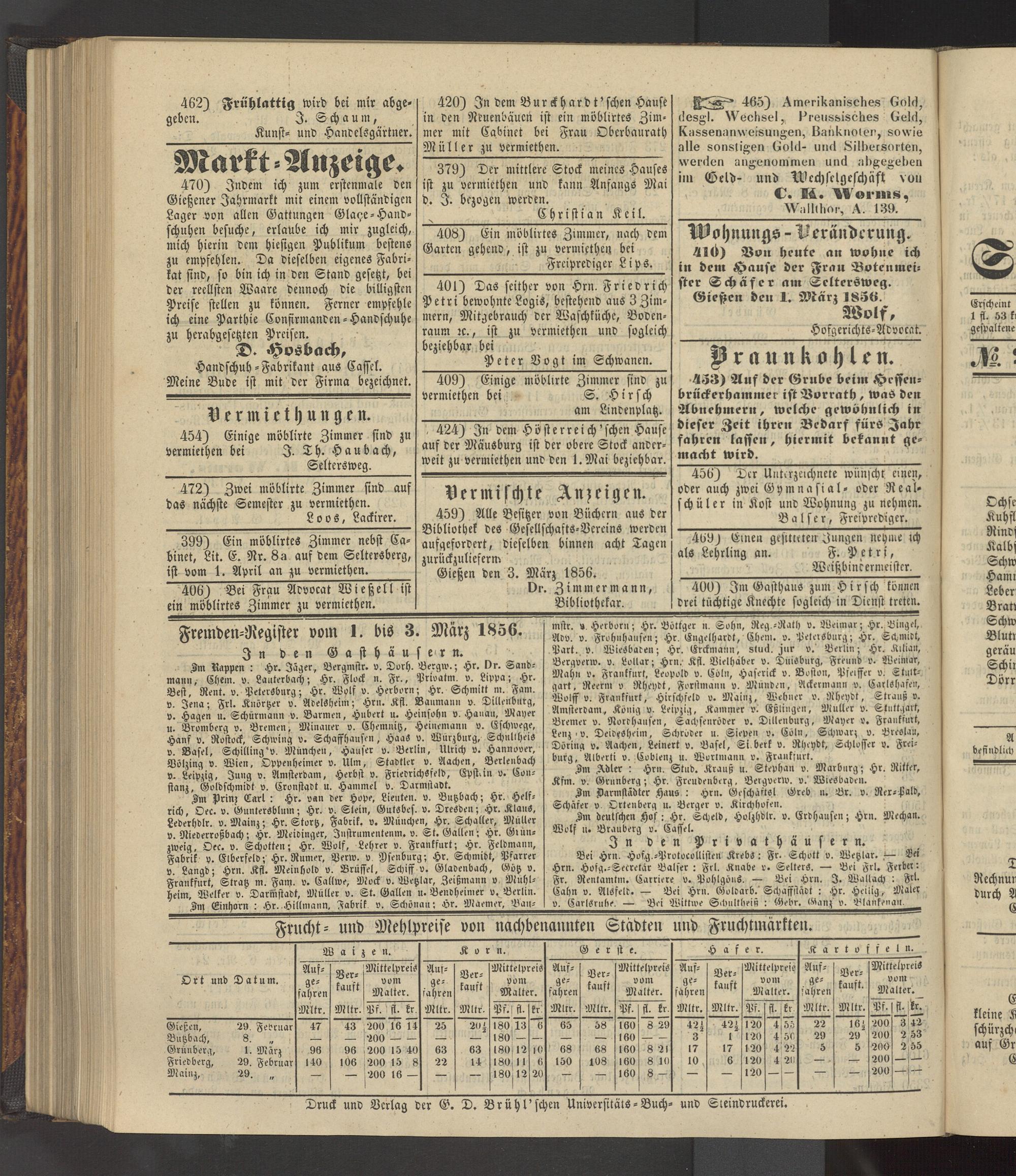 Anzeigeblatt für die Provinzialhauptstadt Gießen. 1840-1867