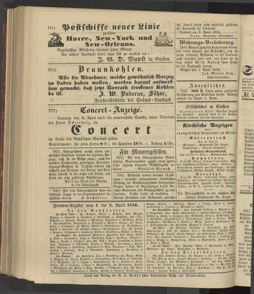 Anzeigeblatt für die Provinzialhauptstadt Gießen. 1840-1867