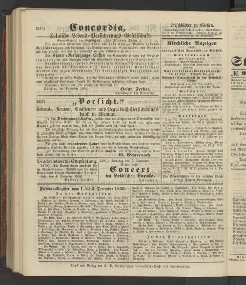 Anzeigeblatt für die Provinzialhauptstadt Gießen. 1840-1867