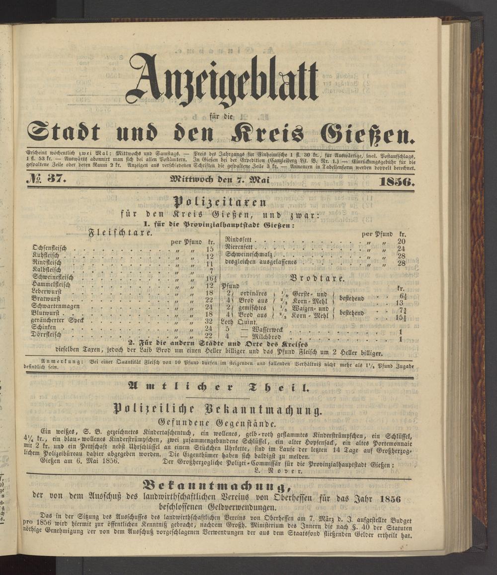 Anzeigeblatt für die Provinzialhauptstadt Gießen. 1840-1867