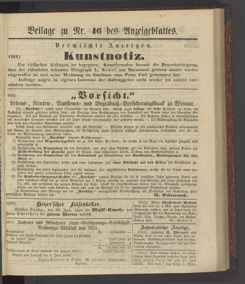 Anzeigeblatt für die Provinzialhauptstadt Gießen. 1840-1867