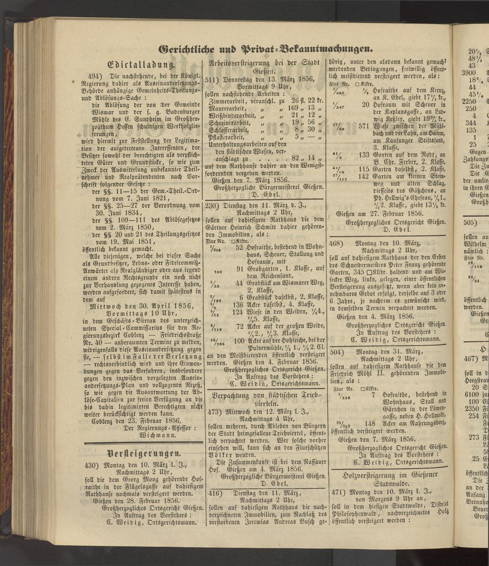 Anzeigeblatt für die Provinzialhauptstadt Gießen. 1840-1867