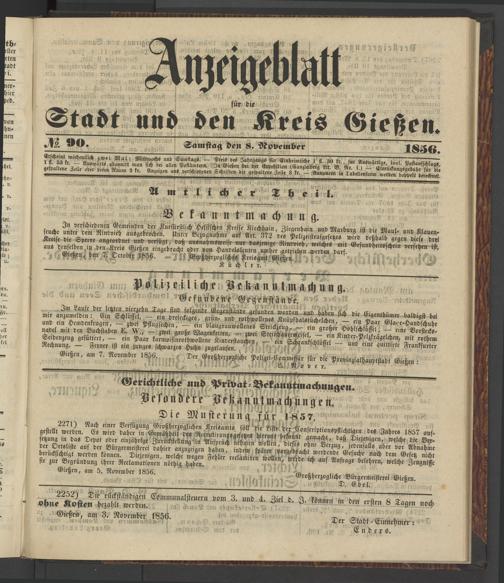 Anzeigeblatt für die Provinzialhauptstadt Gießen. 1840-1867