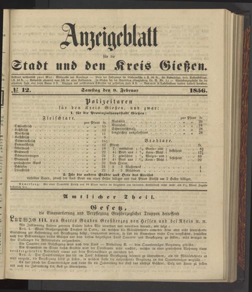 Anzeigeblatt für die Provinzialhauptstadt Gießen. 1840-1867