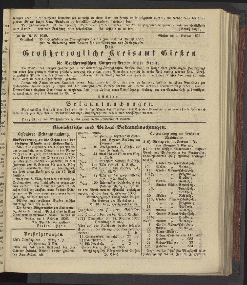 Anzeigeblatt für die Provinzialhauptstadt Gießen. 1840-1867
