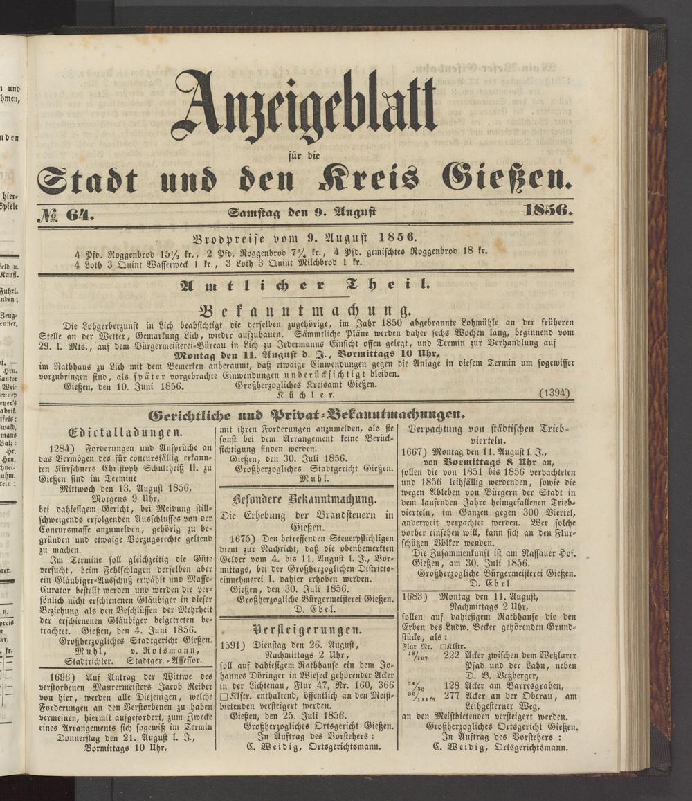 Anzeigeblatt für die Provinzialhauptstadt Gießen. 1840-1867