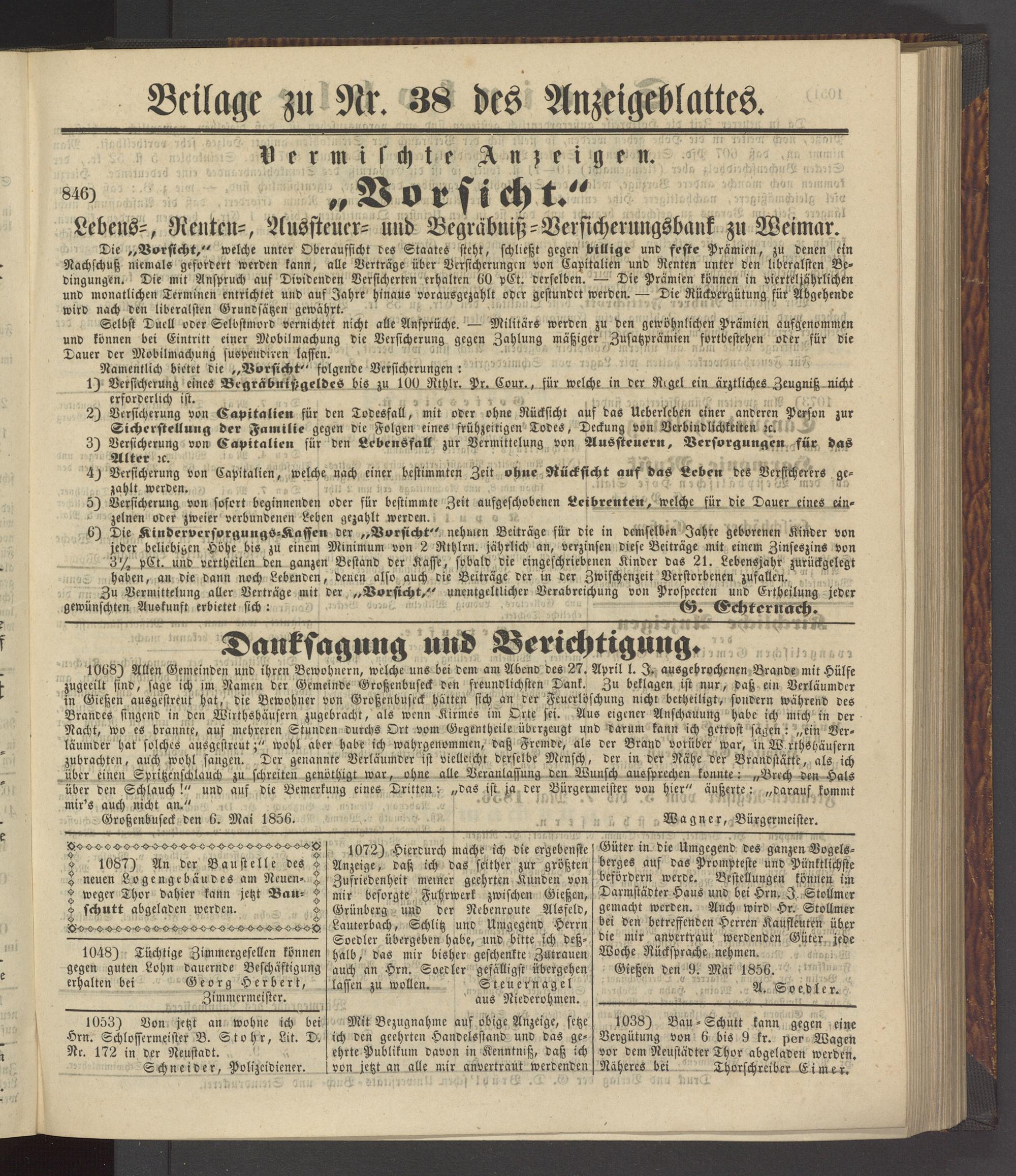 Anzeigeblatt für die Provinzialhauptstadt Gießen. 1840-1867