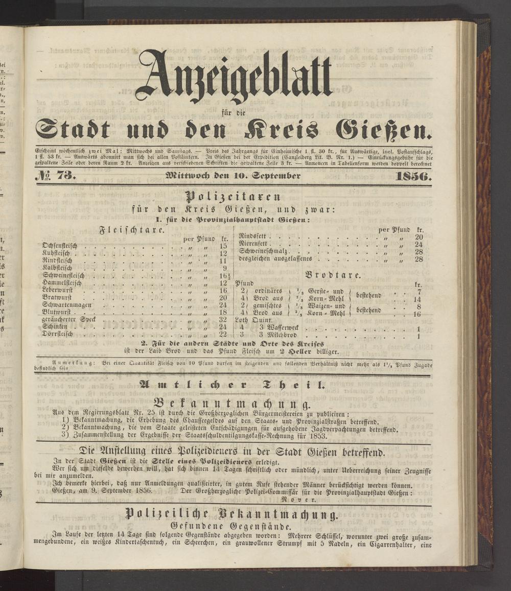 Anzeigeblatt für die Provinzialhauptstadt Gießen. 1840-1867