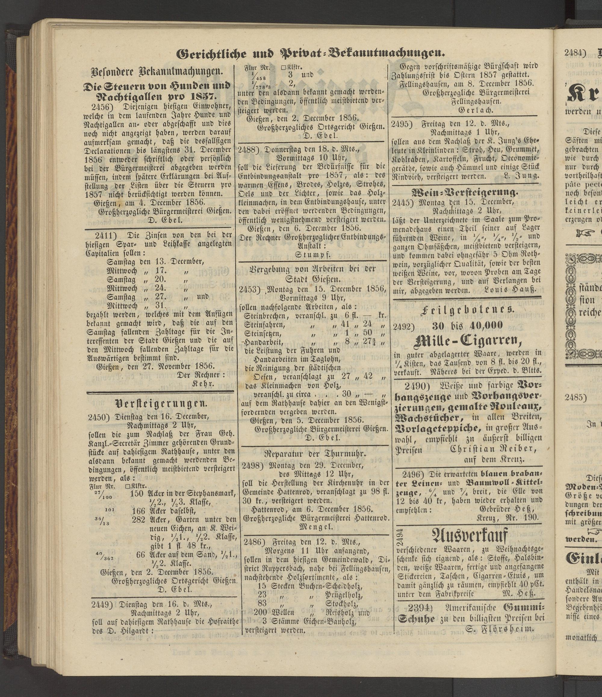 Anzeigeblatt für die Provinzialhauptstadt Gießen. 1840-1867