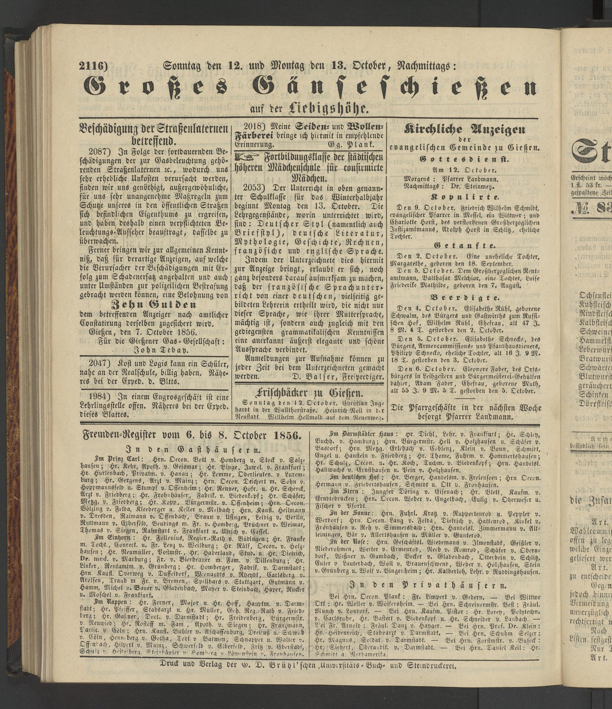 Anzeigeblatt für die Provinzialhauptstadt Gießen. 1840-1867