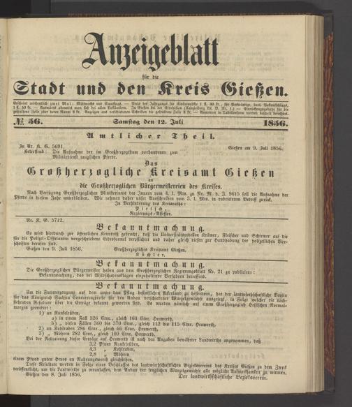 Anzeigeblatt für die Provinzialhauptstadt Gießen. 1840-1867