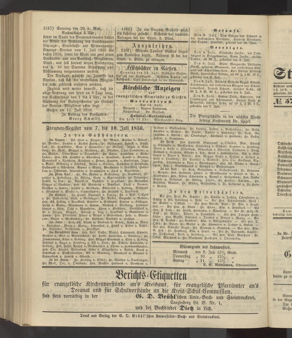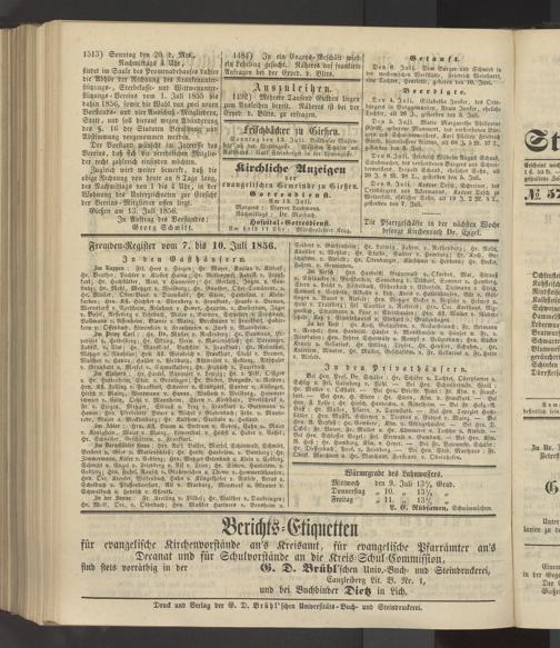 Anzeigeblatt für die Provinzialhauptstadt Gießen. 1840-1867