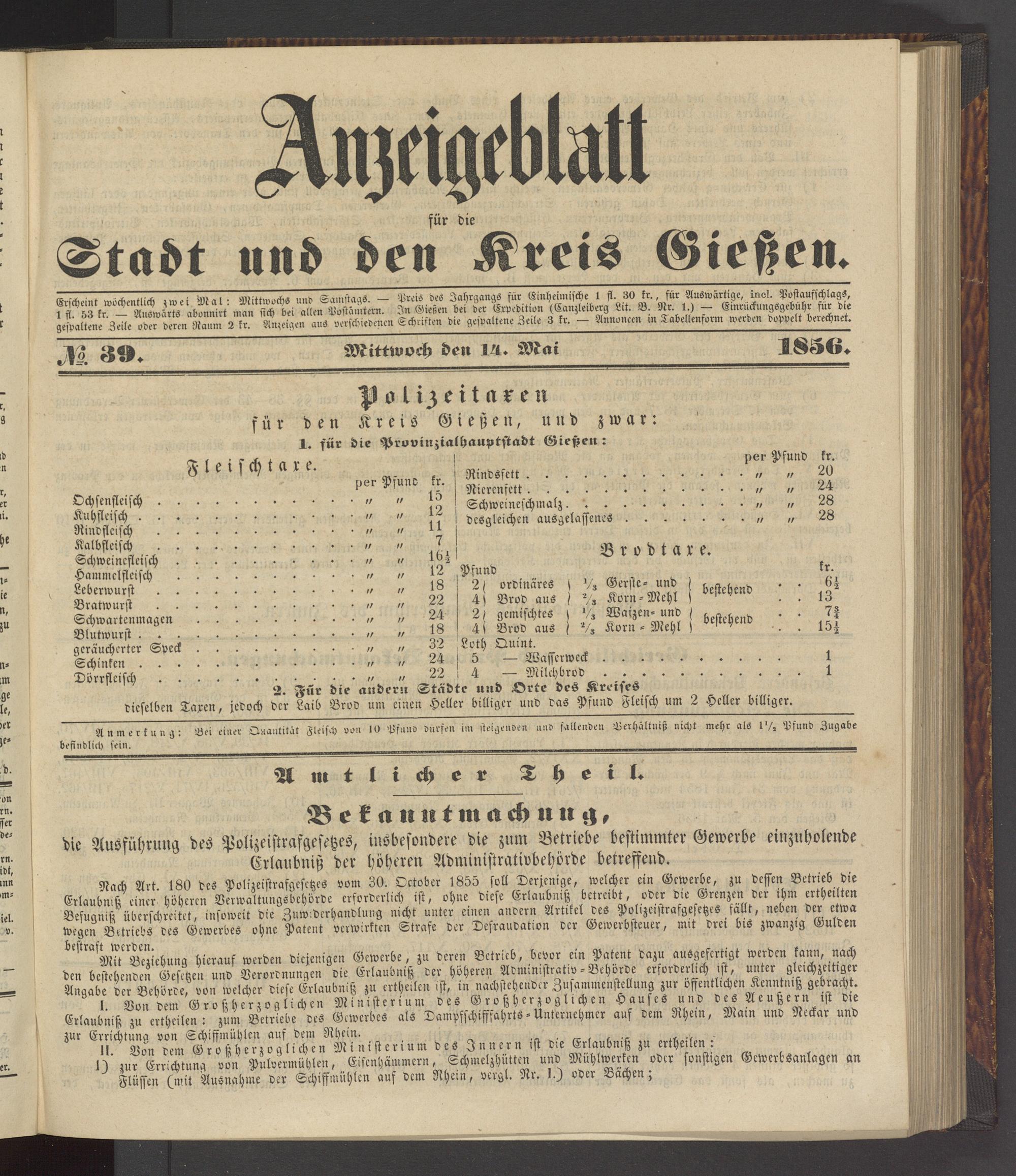 Anzeigeblatt für die Provinzialhauptstadt Gießen. 1840-1867