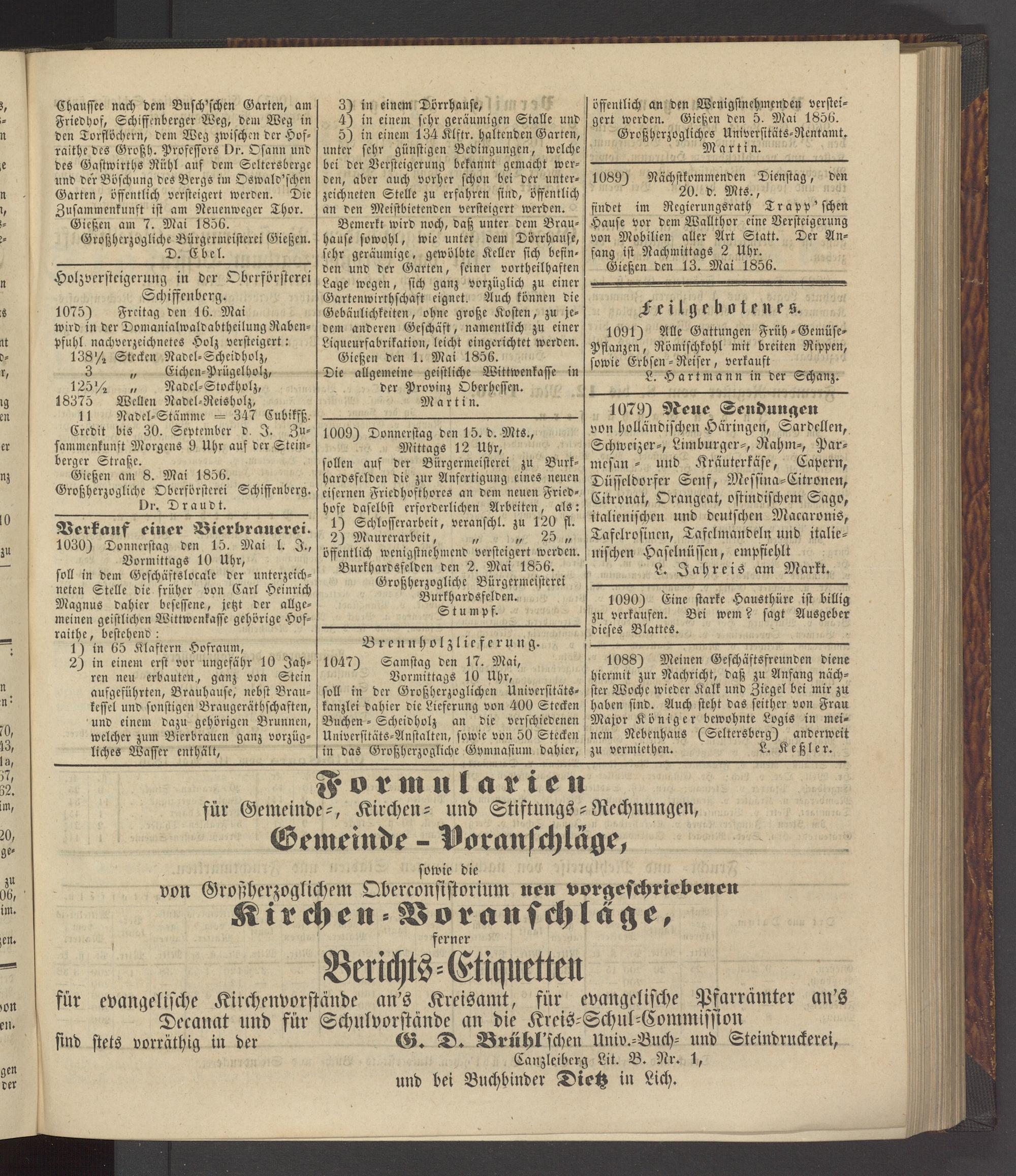 Anzeigeblatt für die Provinzialhauptstadt Gießen. 1840-1867
