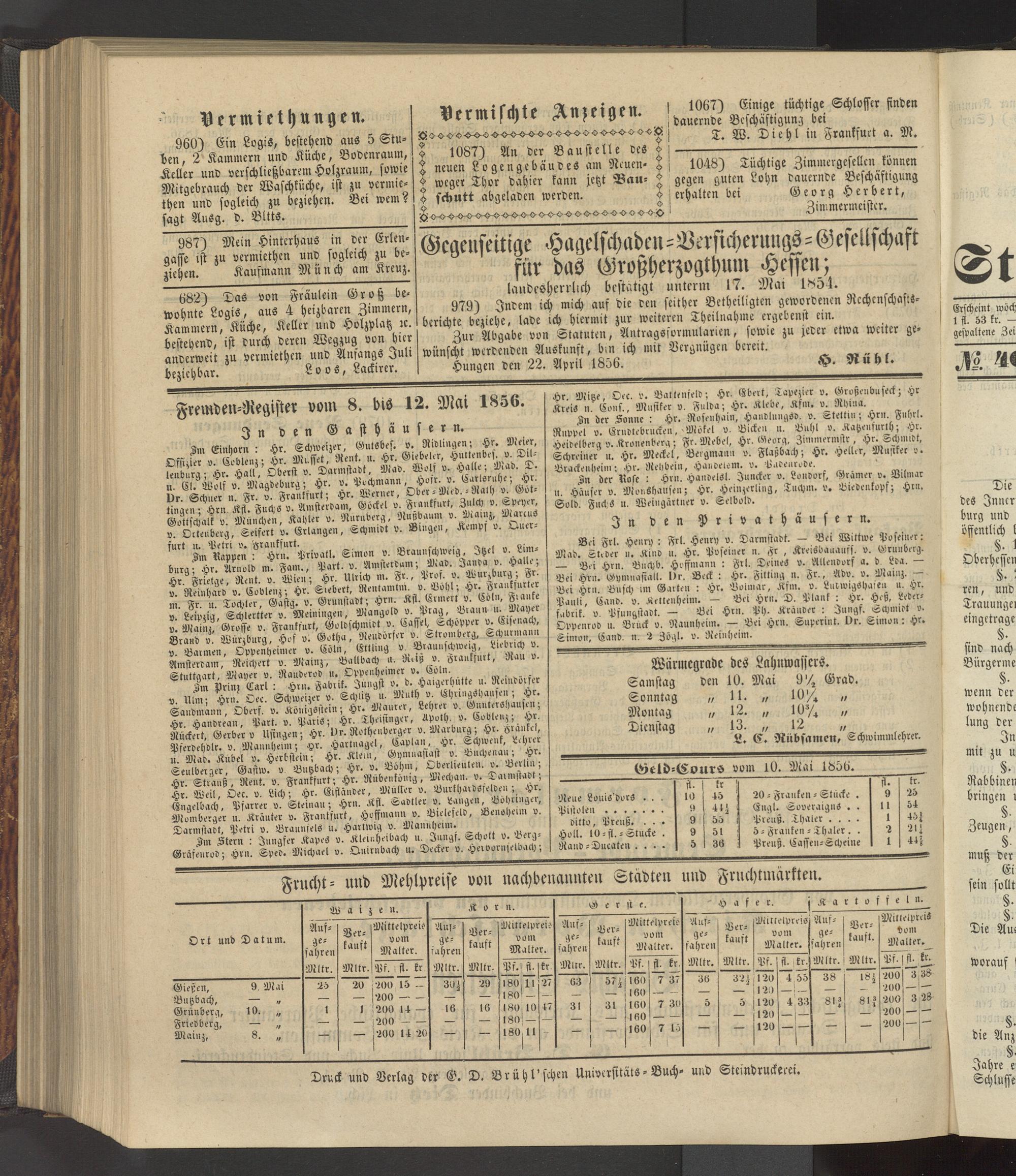 Anzeigeblatt für die Provinzialhauptstadt Gießen. 1840-1867