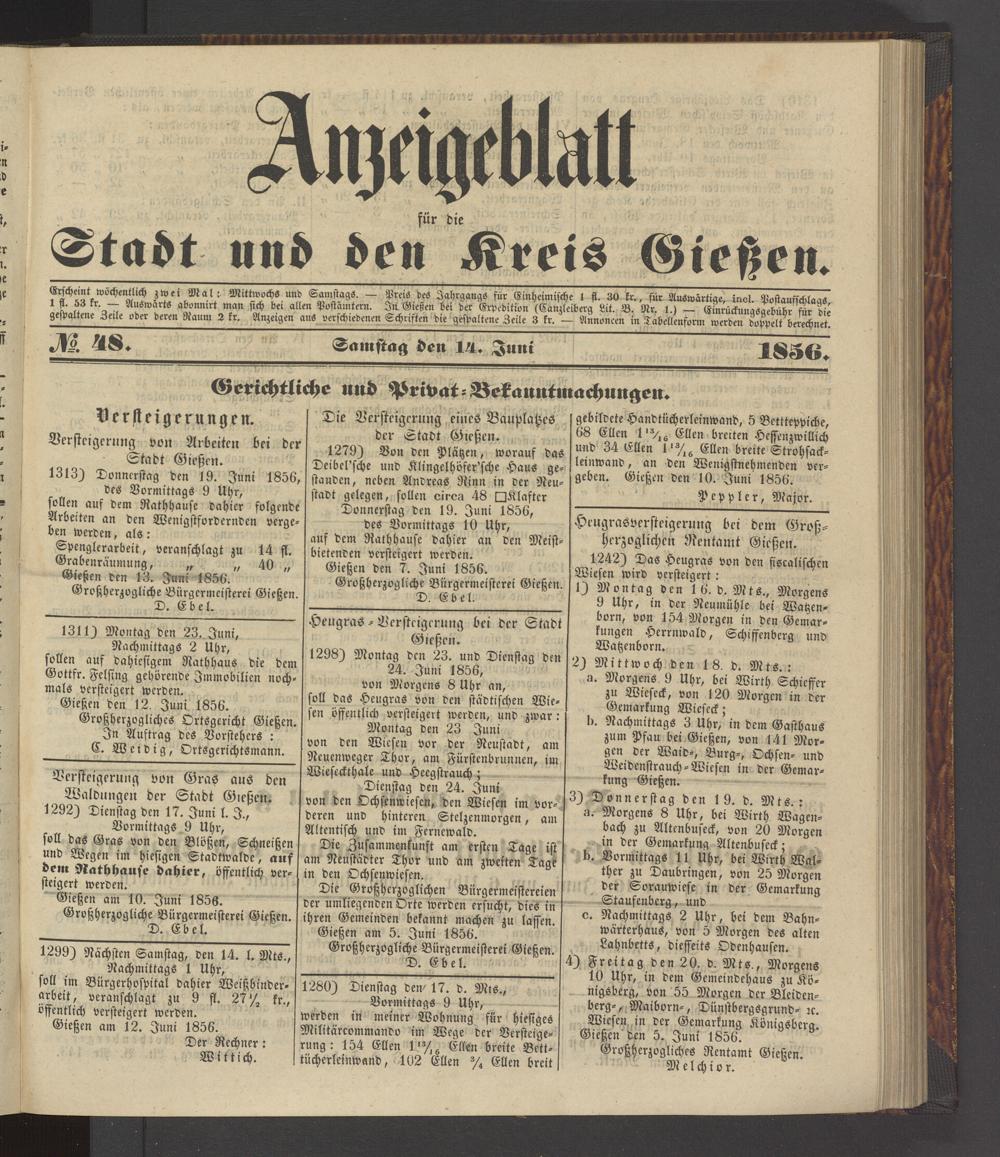 Anzeigeblatt für die Provinzialhauptstadt Gießen. 1840-1867