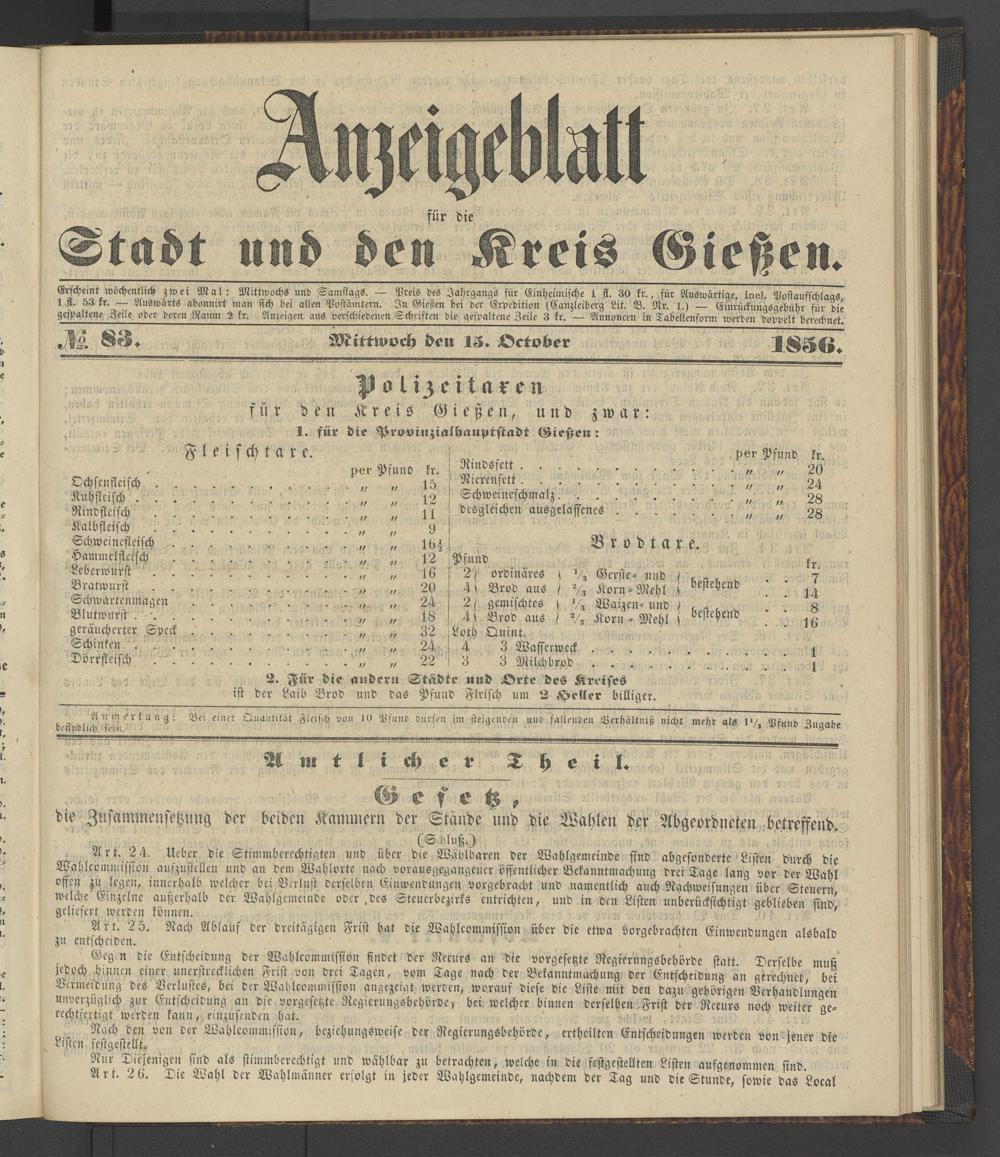 Anzeigeblatt für die Provinzialhauptstadt Gießen. 1840-1867