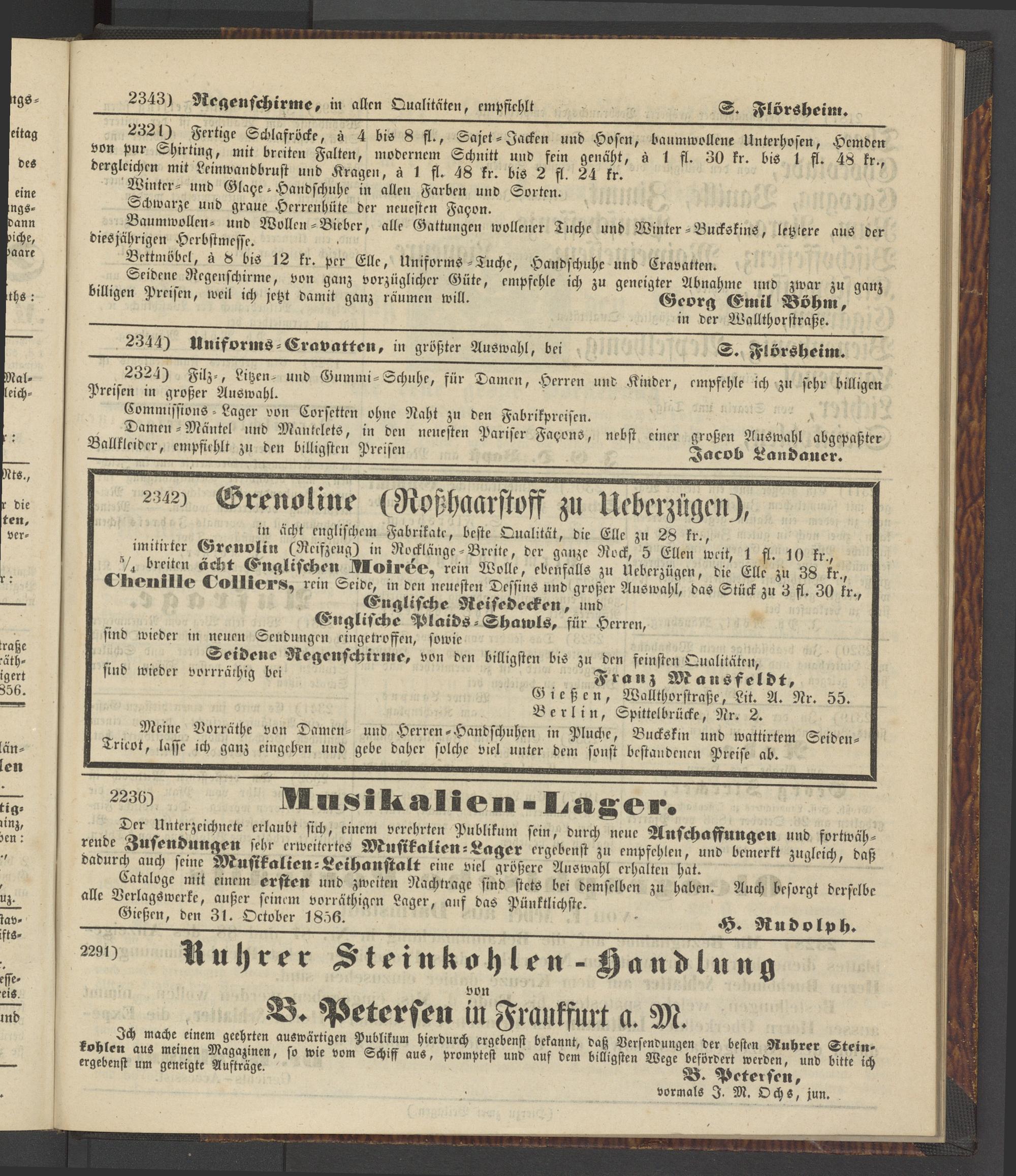 Anzeigeblatt für die Provinzialhauptstadt Gießen. 1840-1867