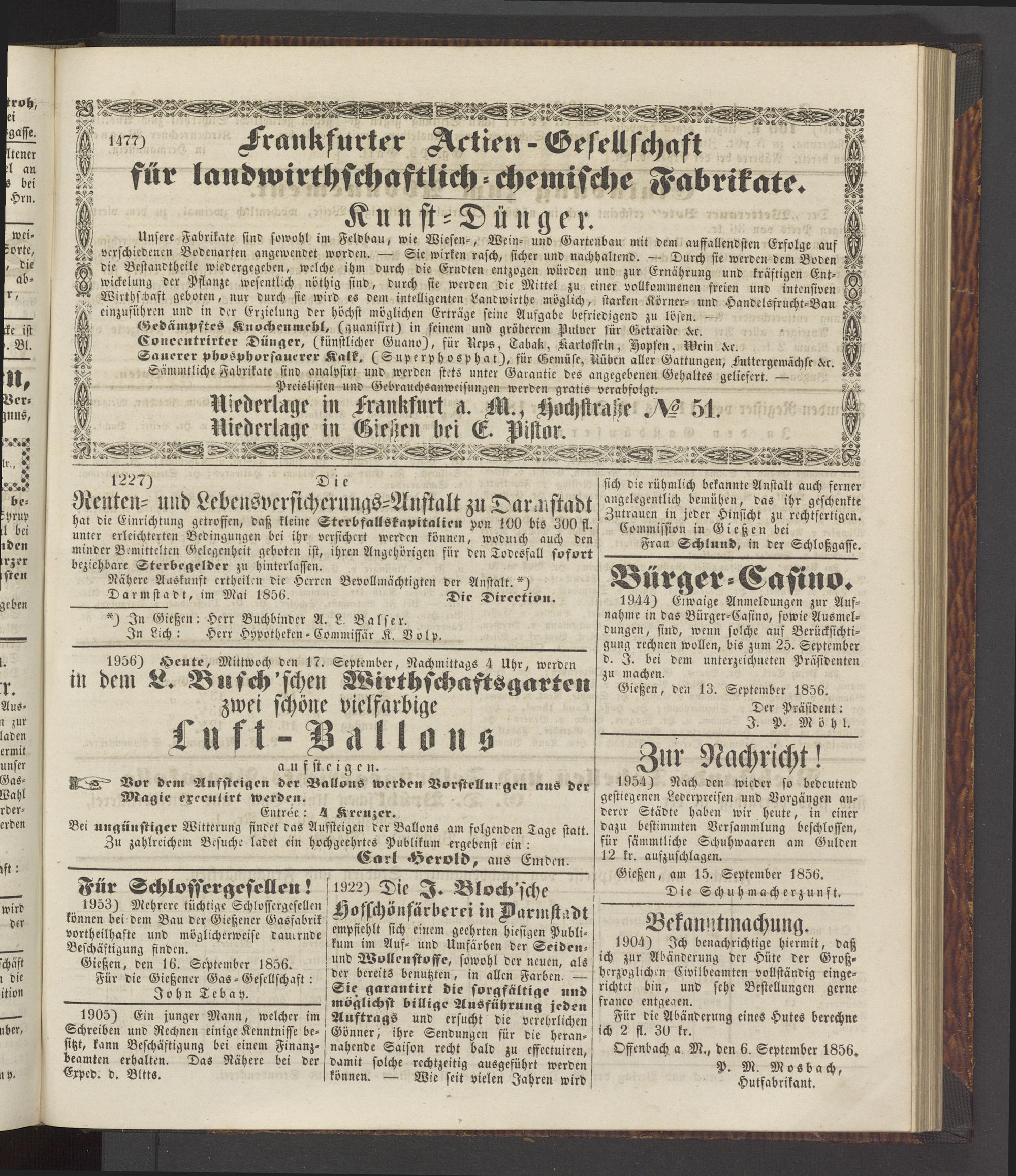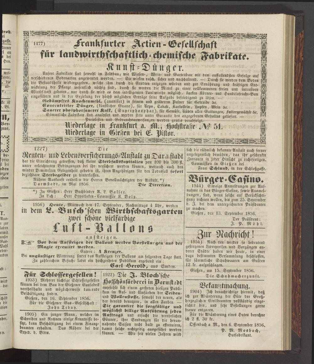 Anzeigeblatt für die Provinzialhauptstadt Gießen. 1840-1867