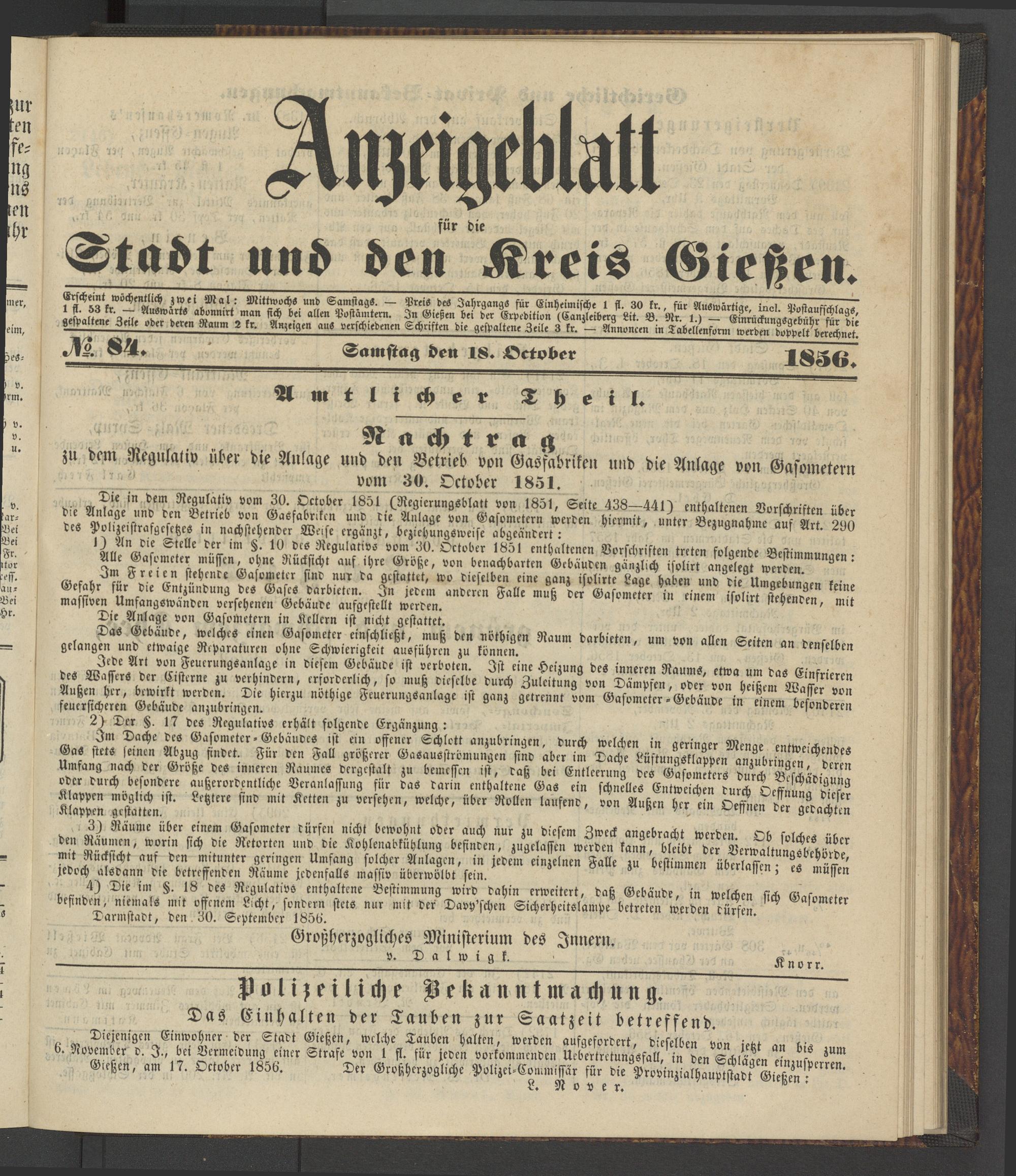 Anzeigeblatt für die Provinzialhauptstadt Gießen. 1840-1867