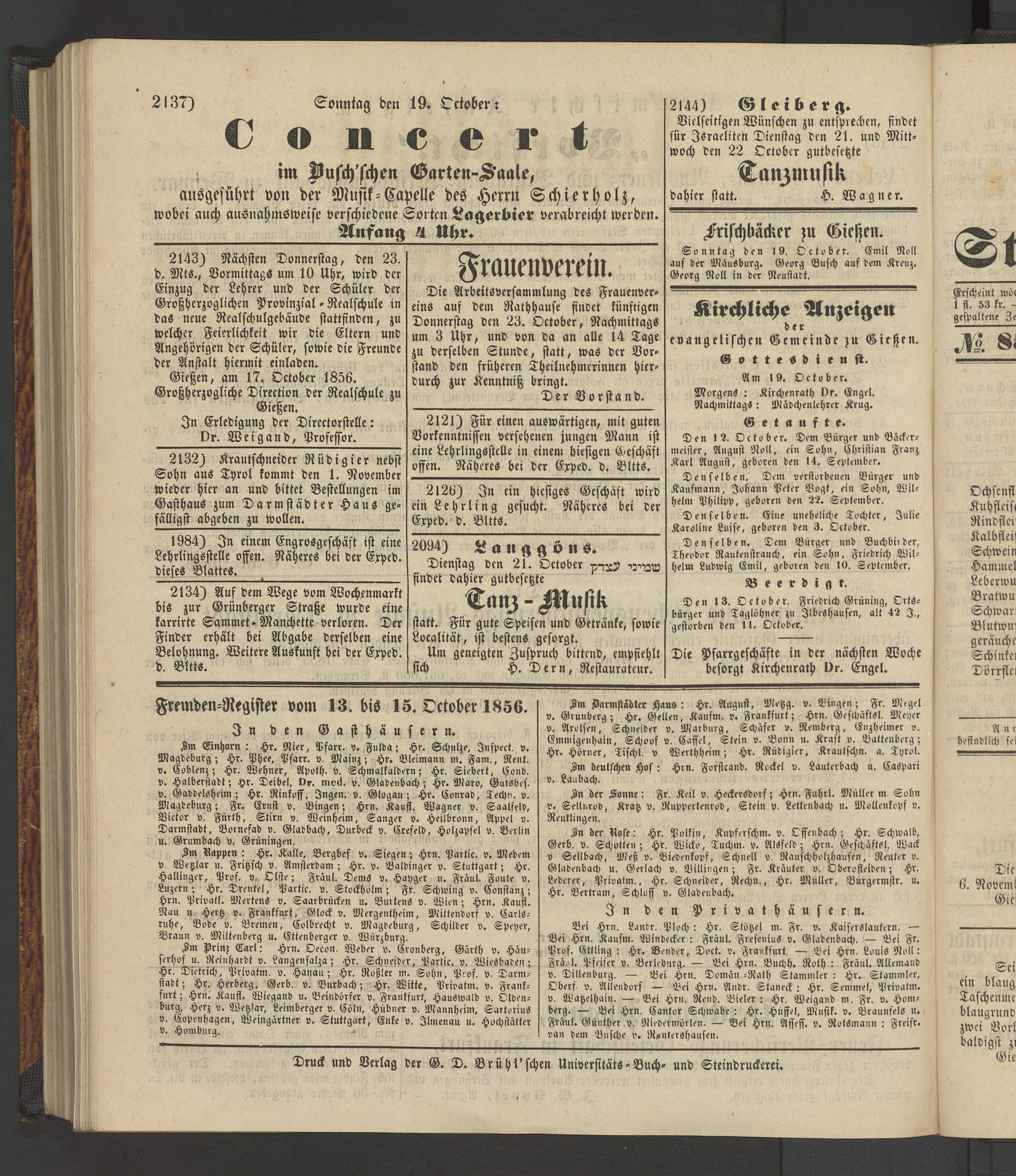 Anzeigeblatt für die Provinzialhauptstadt Gießen. 1840-1867