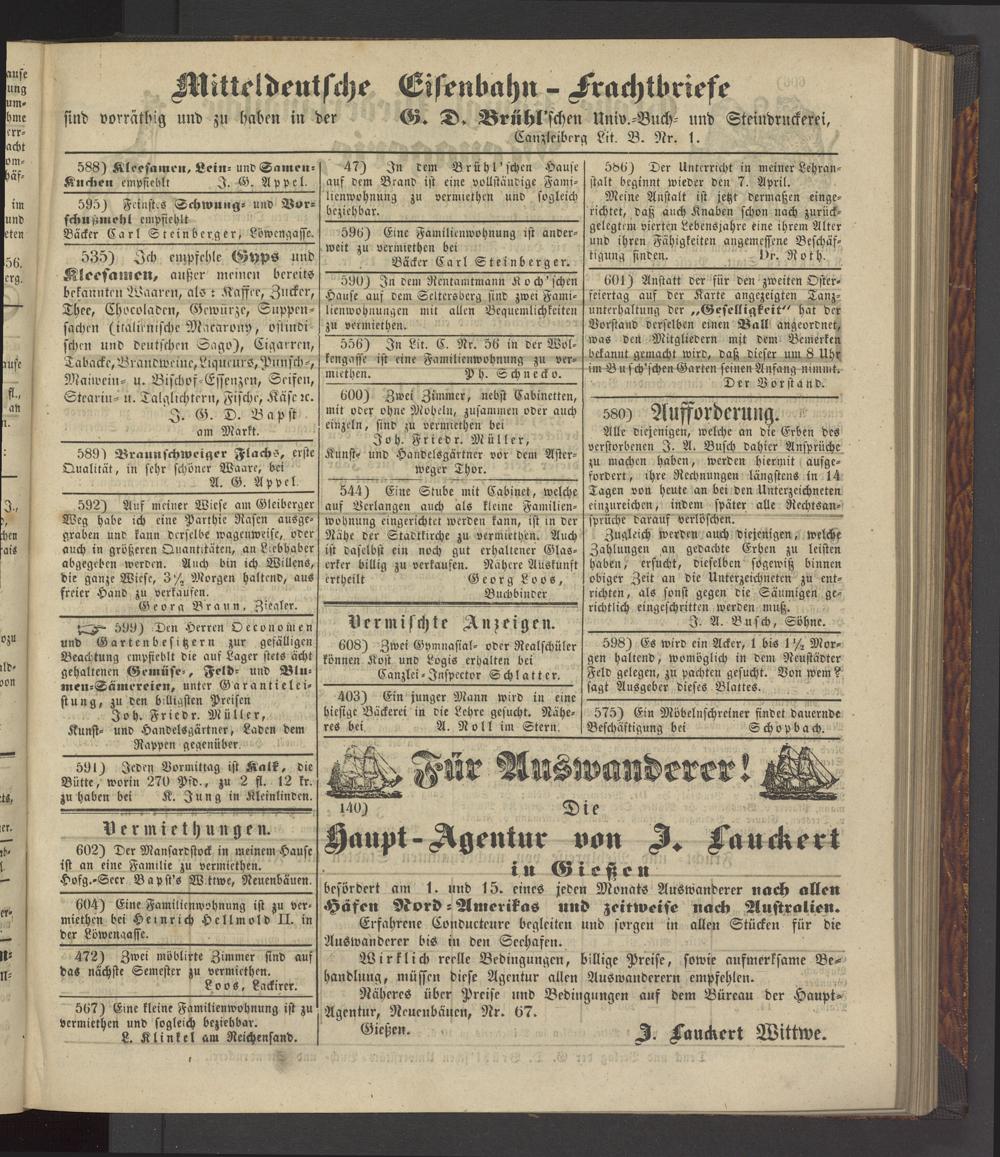 Anzeigeblatt für die Provinzialhauptstadt Gießen. 1840-1867