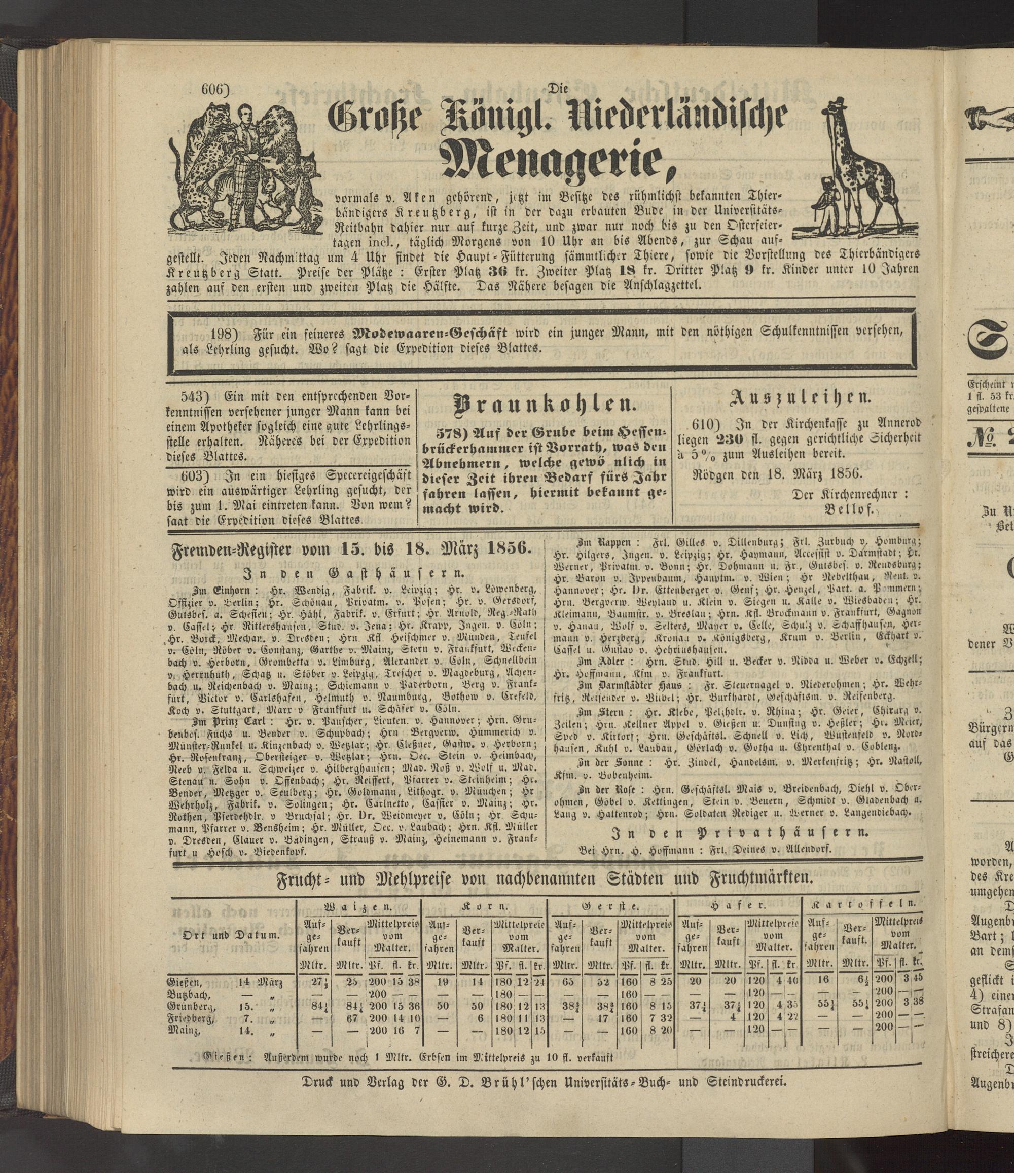 Anzeigeblatt für die Provinzialhauptstadt Gießen. 1840-1867