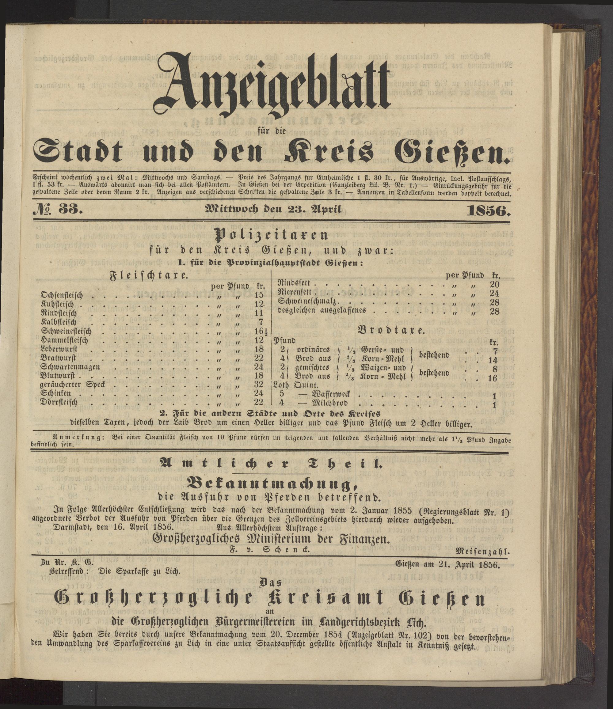 Anzeigeblatt für die Provinzialhauptstadt Gießen. 1840-1867