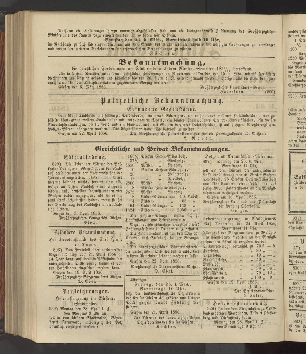 Anzeigeblatt für die Provinzialhauptstadt Gießen. 1840-1867
