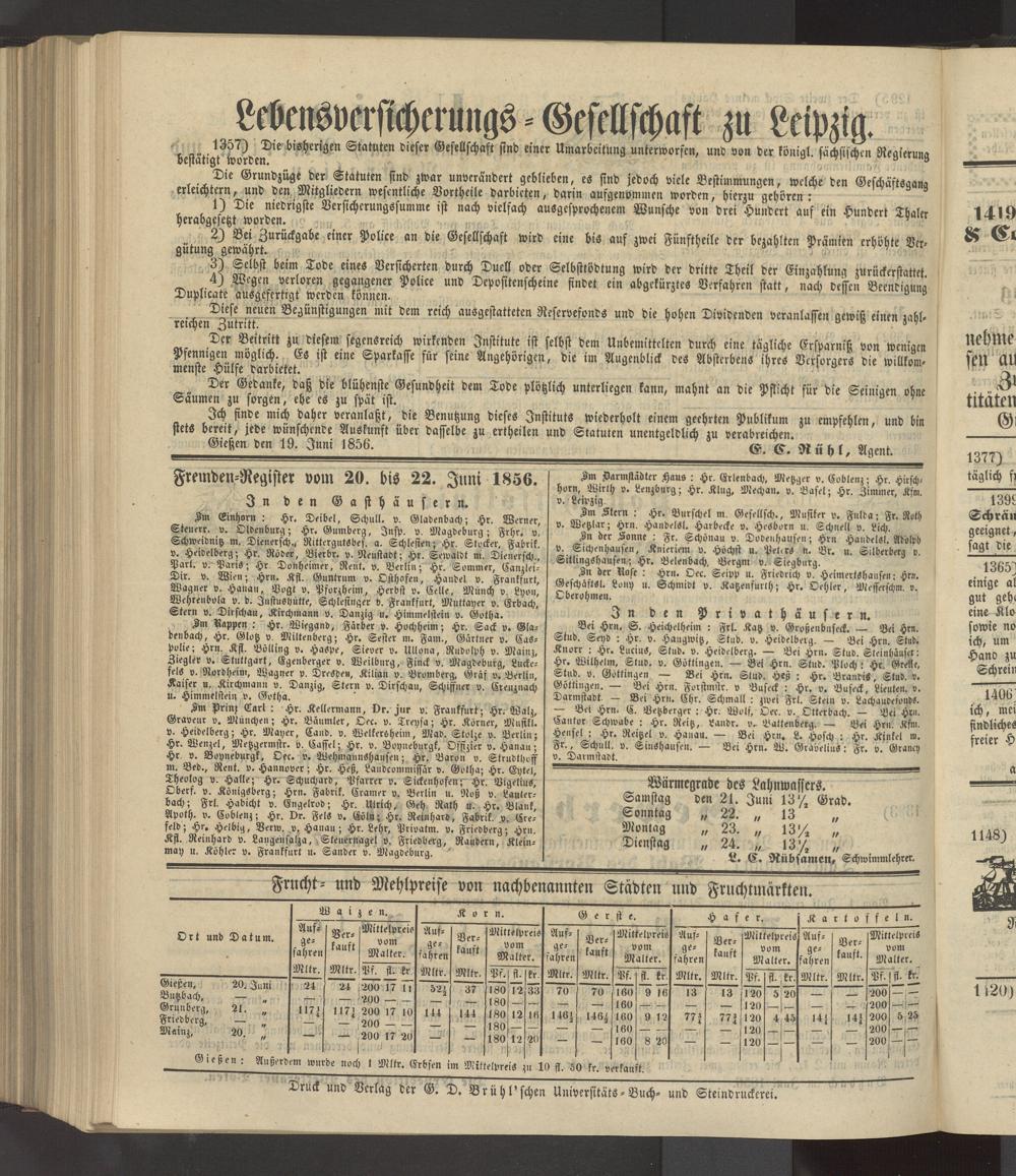 Anzeigeblatt für die Provinzialhauptstadt Gießen. 1840-1867