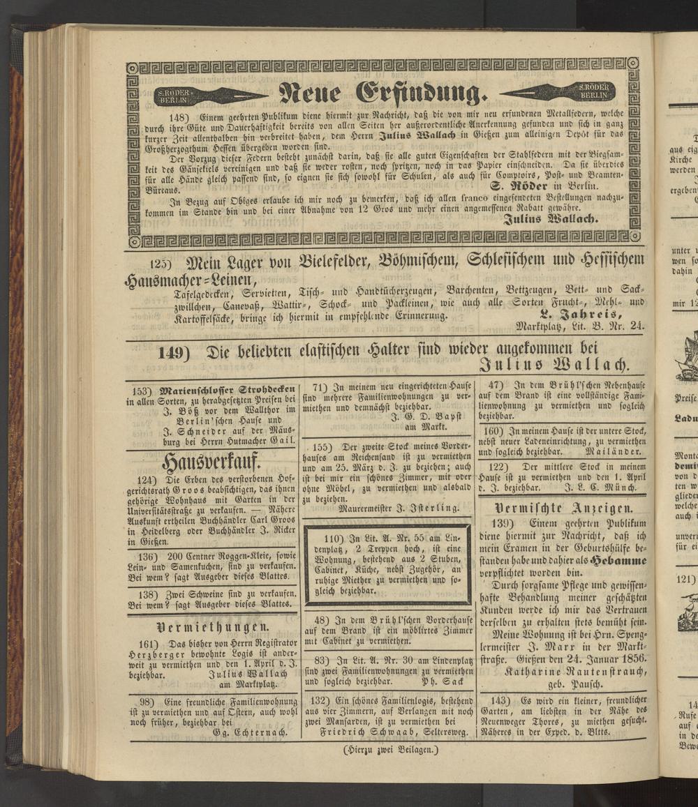 Anzeigeblatt für die Provinzialhauptstadt Gießen. 1840-1867