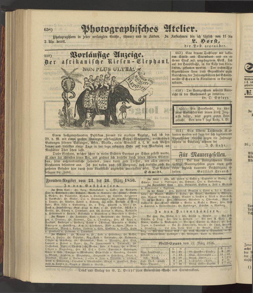 Anzeigeblatt für die Provinzialhauptstadt Gießen. 1840-1867