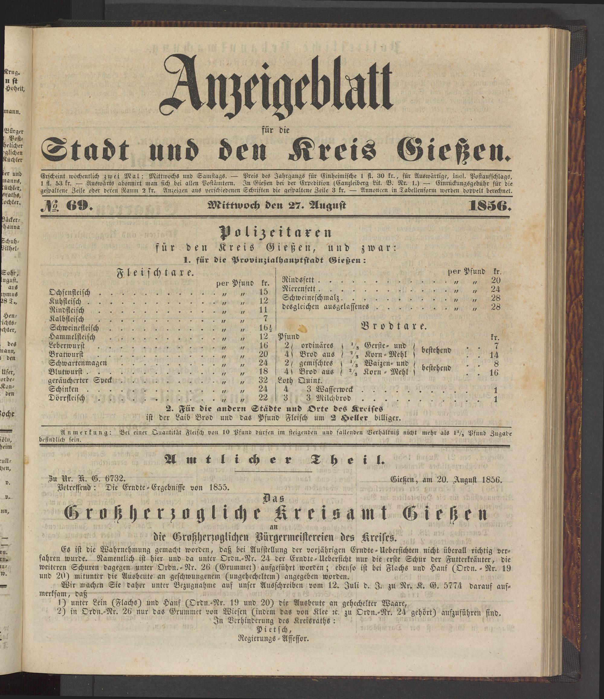 Anzeigeblatt für die Provinzialhauptstadt Gießen. 1840-1867