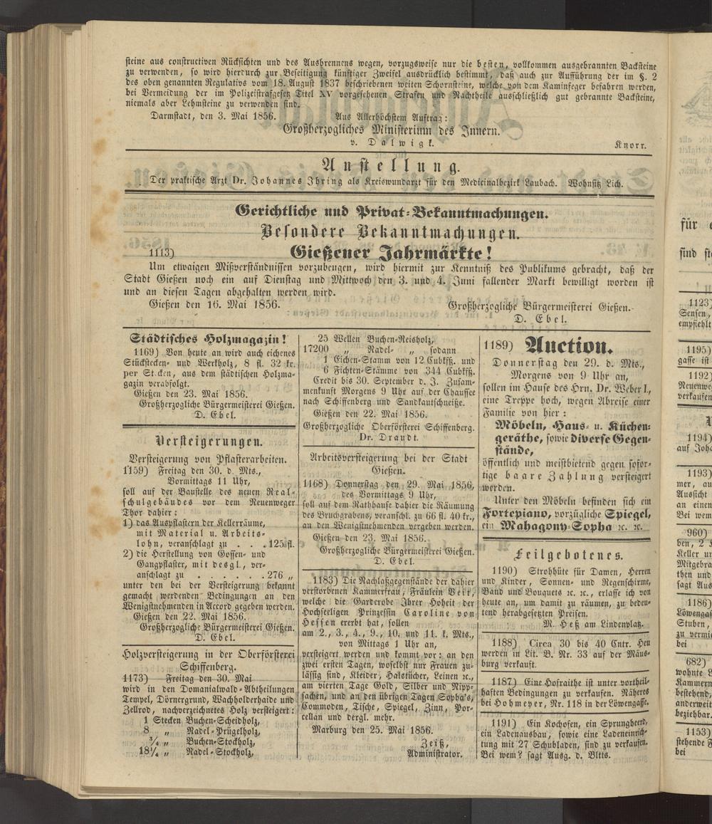 Anzeigeblatt für die Provinzialhauptstadt Gießen. 1840-1867