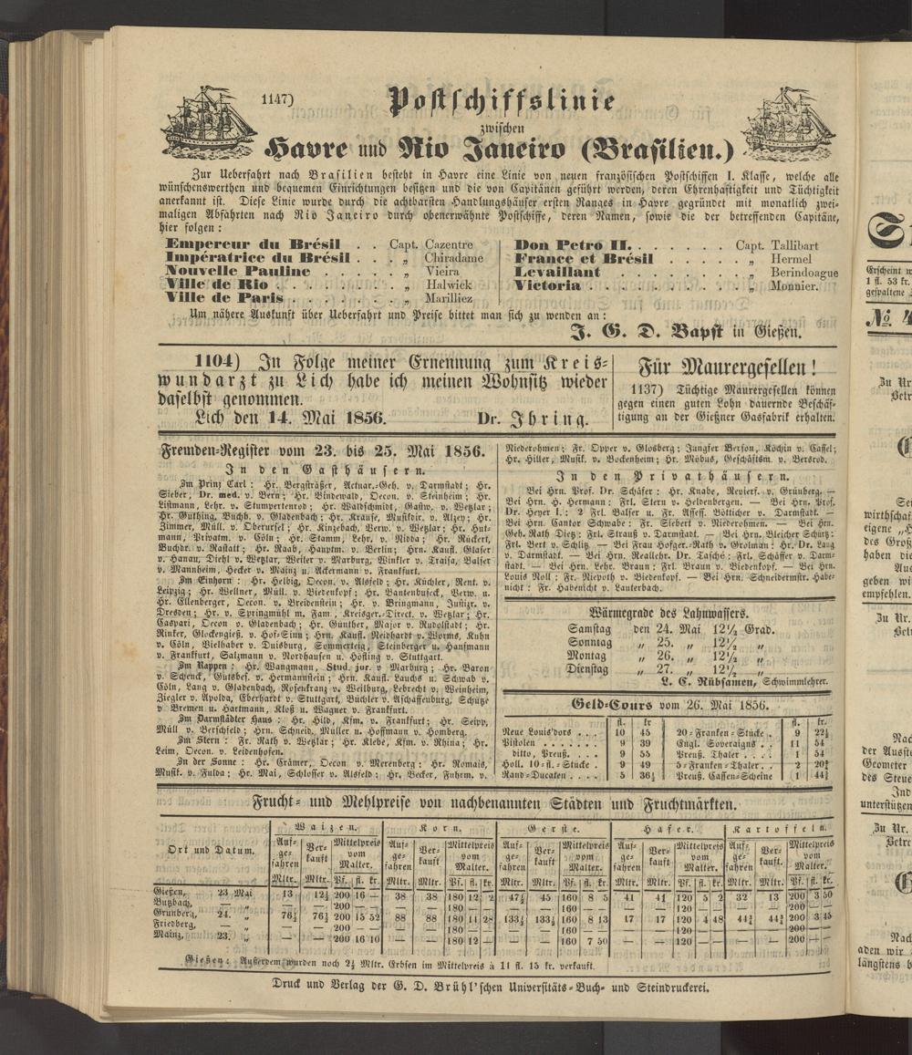 Anzeigeblatt für die Provinzialhauptstadt Gießen. 1840-1867