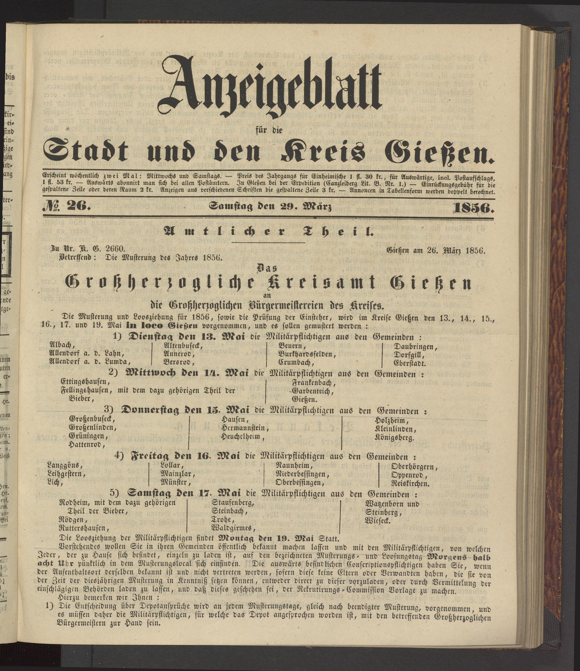 Anzeigeblatt für die Provinzialhauptstadt Gießen. 1840-1867